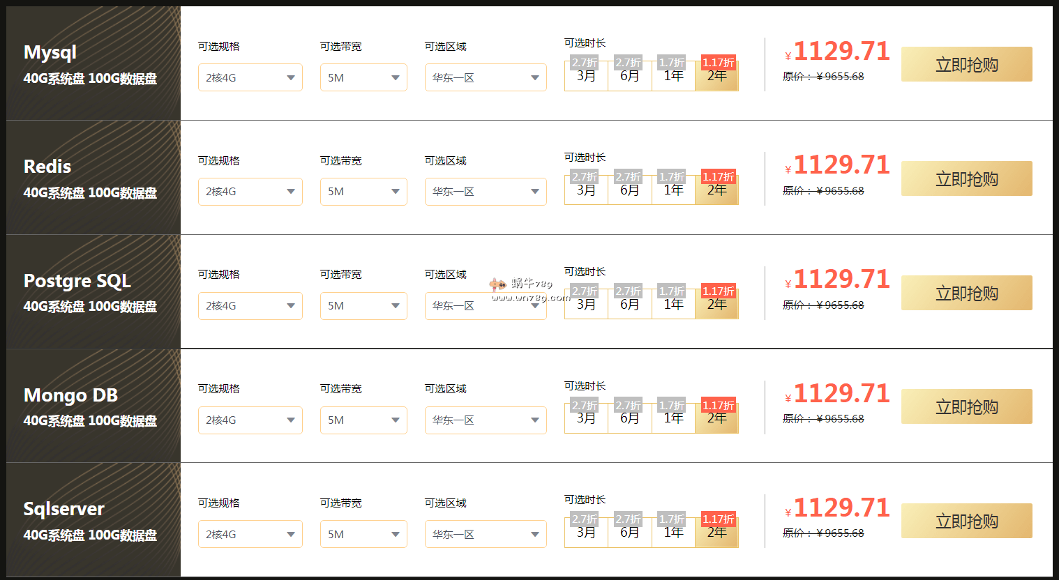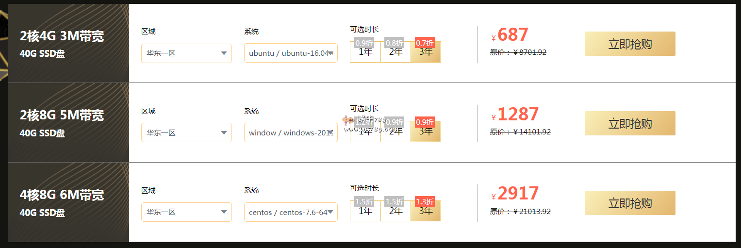 下面产品新老用户均可参与,每款配置同一时长只能购买一次。