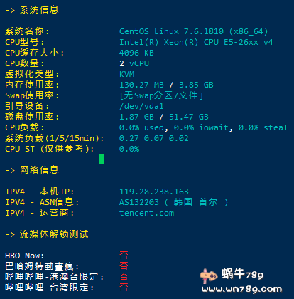 1、腾讯云韩国云服务器基本信息及网络信息测试。