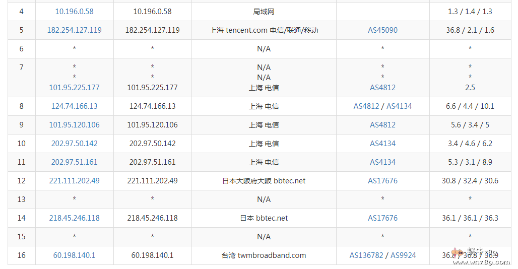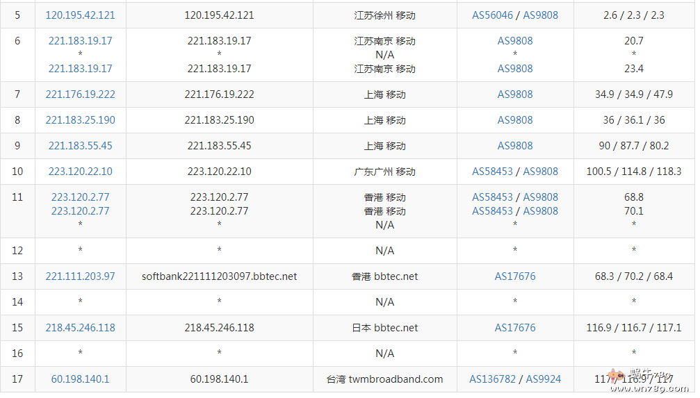 | 华东地区 | 47 | 上海(bgp) 35.7 毫秒 | 江苏徐州(移动) 116.5 毫秒 | 58.5 毫秒 |