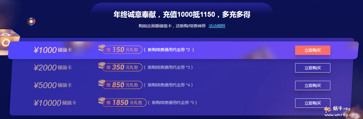 这个活动是此次华为云2019年双12促销活动的一大亮点!大家可以选择先购买储值卡在购买云服务器产品,因为充值赠送的代金券可以用于活动产品!!!赠送代金券的面值如下。