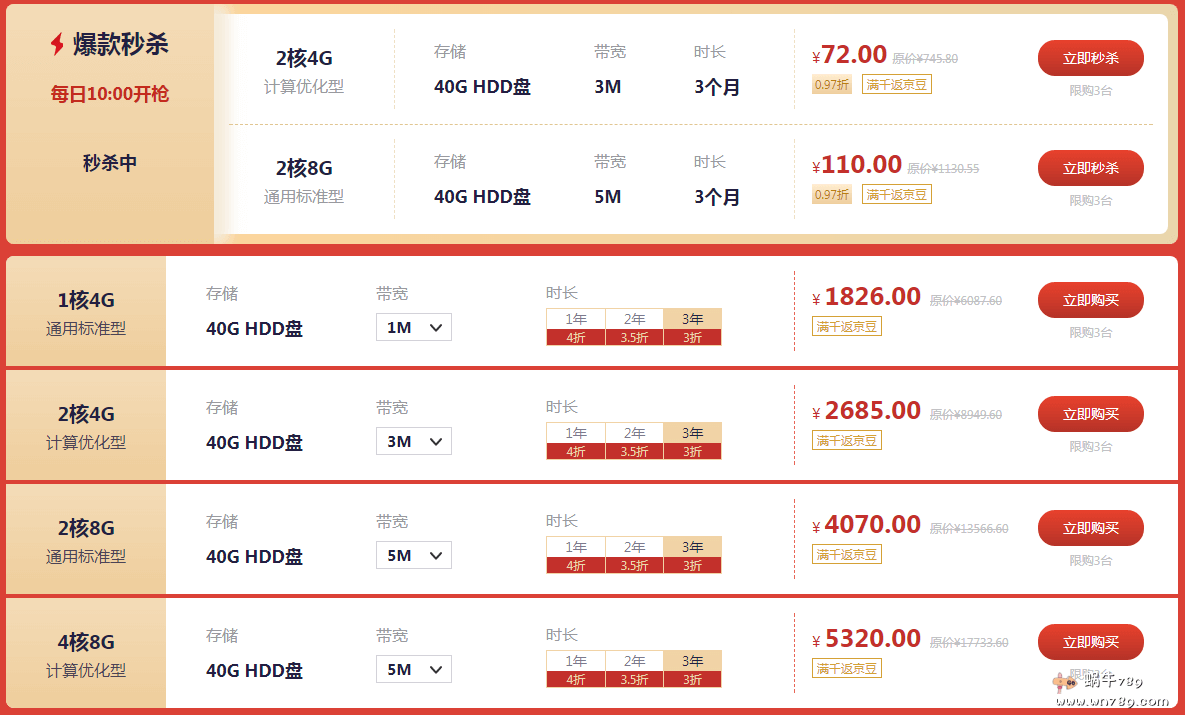 3、所有促销的云服务器均可以一次性购买三台,不过每个用户只有一次购买的机会!