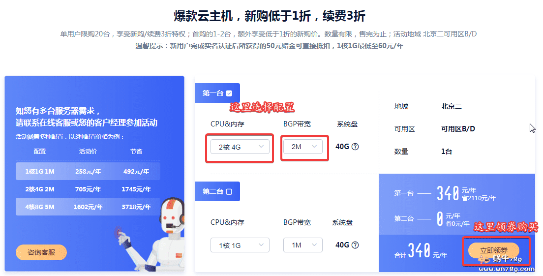 购买方法很简单,点击直达链接到活动页面后如下图选择即可。