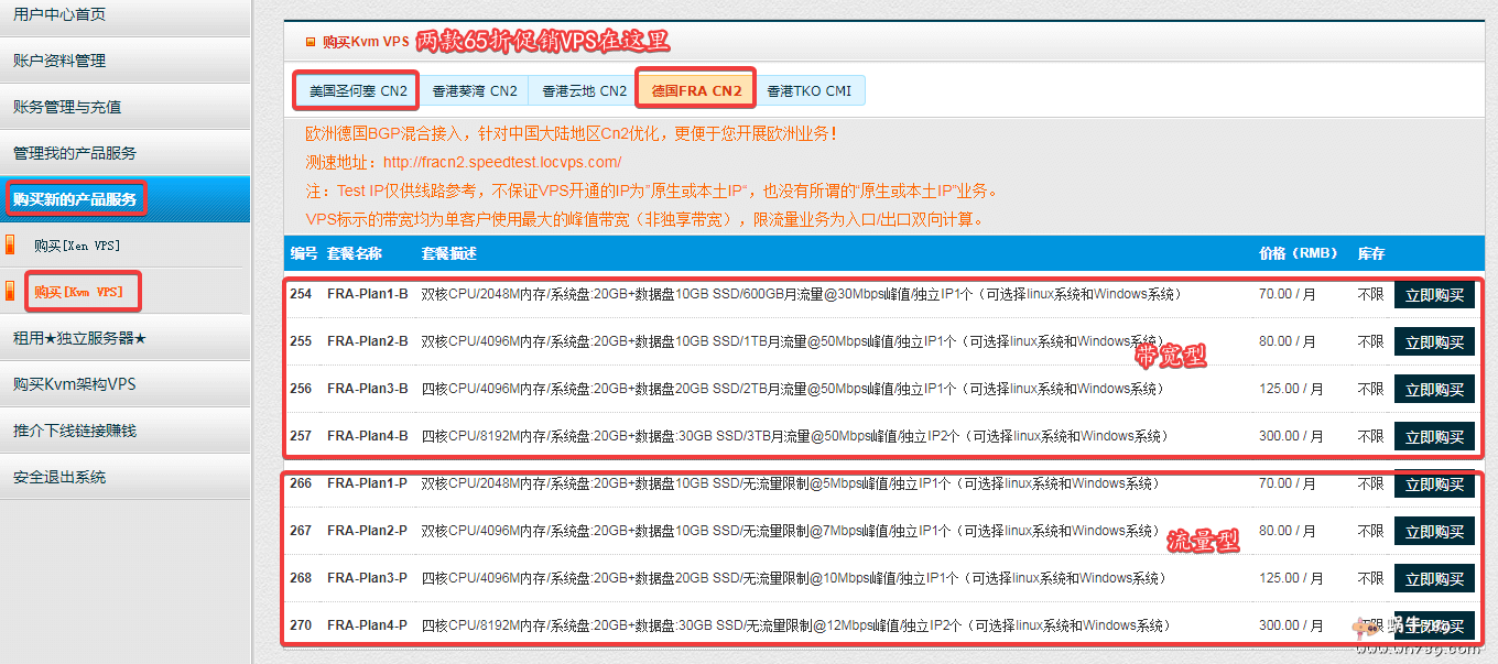 上面只列举了部分方案,更多65折促销VPS请到官网用户管理中心如下图查看。