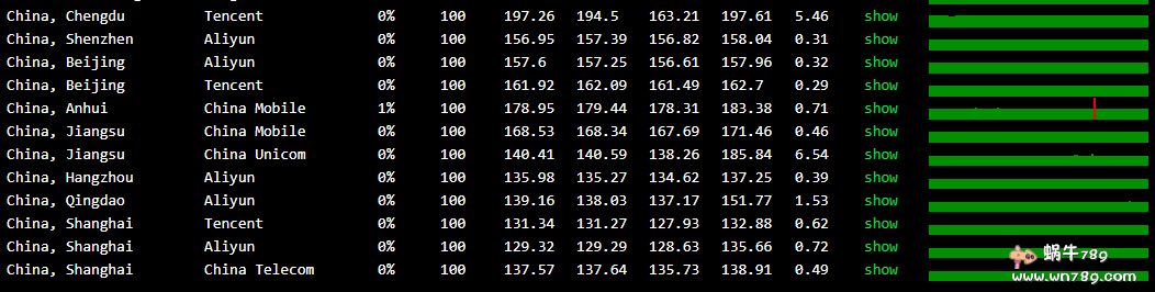 | 联通线路 | 12 | 安徽滁州(联通) 136.1 毫秒 | 重庆(联通) 184.0 毫秒 | 152.2 毫秒 |