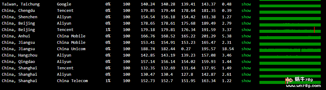 | 华南地区 | 26 | 广东广州(移动) 150.3 毫秒 | 广东茂名(移动) 202.3 毫秒 | 166.7 毫秒 |