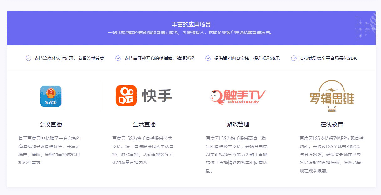 音*直播LSS能为客户提供一站式智能直播云服务,可用于直播下行流量抵扣,如果您业务长期稳定、使用量可预估,建议购买流量包,价格更优惠。购买10TB及以上规格流量包,赠直播基础版SDK一年使用权,仅限企业实名认证用户购买。适用超多场景,活动期间购买10TB及以上流量包还可赠送直播基础版SDK。