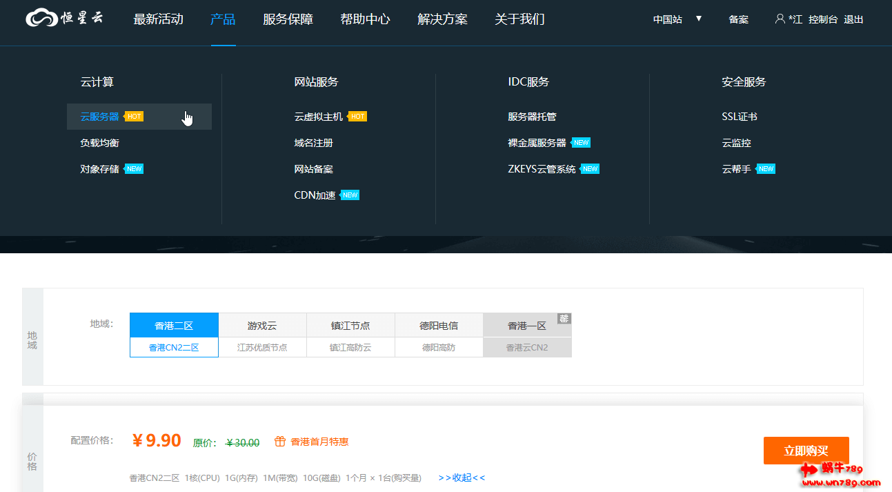 恒星云怎么样?恒星云是一家2020年新创办的商家,由一个工作室运行,销售系统使用的是“ZKEYS公有云业务管理系统”,目前主要从事云服务器销售,有香港CN2云服务器、镇江高防云服务器、四川德阳高防云服务器可以选择,适合建站等用途。近期恒星云针对香港沙田CN2云服务器有促销活动,1核1G内存首月9.9元起、2核2G内存首月15.6元!有兴趣的可以体验一番。