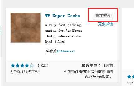 也可以直接按下面操作在WordPress后台,点击“插件”,然后再点“安装插件”,再搜索“WP Super Cache”,选择“现在安装”。