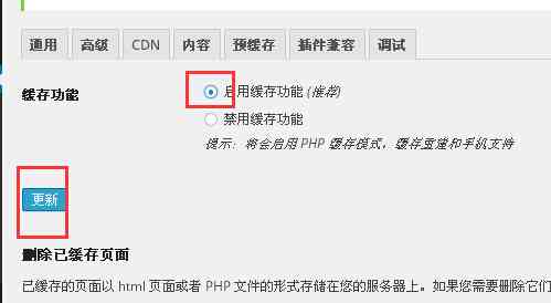 4.我们首先选择“启用缓存功能”,然后再点击更新