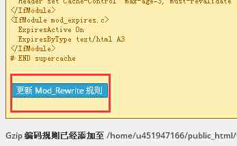 此页面网下拉,要求”更新Mod_Rewrite规则。我们点击更新,一般都不会报错。显示绿色,表示全部用过。