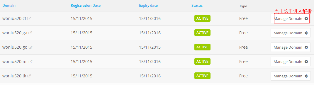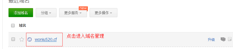 9、我们选择”My Domins“进入到域名管理,然后点击下图红框位置进入相应域名的解析管理。