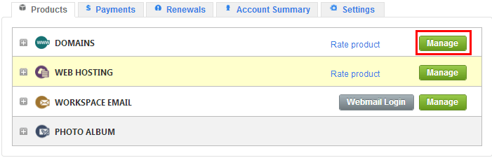 登陆后,点击域名栏后的“Manage”进入到管理页面
