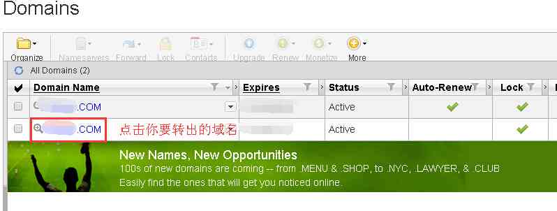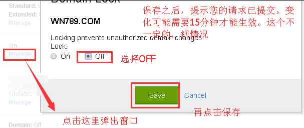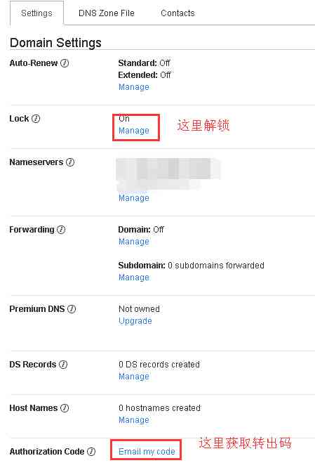 下面我们为域名大带宽,请点击Lock项内的“Manage”给转出的域名大带宽
