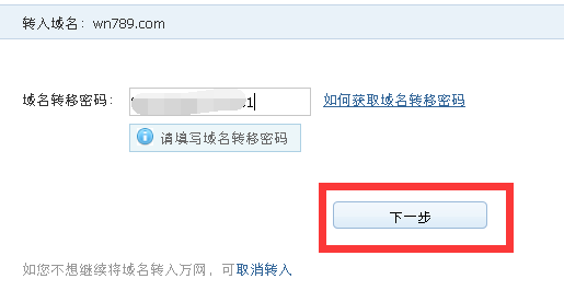 访问验证地址后,需要填写域名转移码,我们在最开始时告诉了大家怎么获取转移码,到邮箱查看,并填写即可。